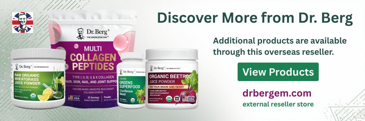 Any questions, concerns, claims or liabilities relating to any purchases on this site shall be directed solely to reseller and not Dr. Berg. any sales, discount codes or promotions offered directly by Dr. Berg are not available for purchases on this site. Dr. Berg (tm) and related word and logo marks are the proprietary intellectual property of Dr. Berg Nutritionals and are used on this site under license from the owner. All rights reserved.