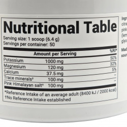 Includes potassium, magnesium, calcium, sodium (from Himalayan salt), and trace minerals.